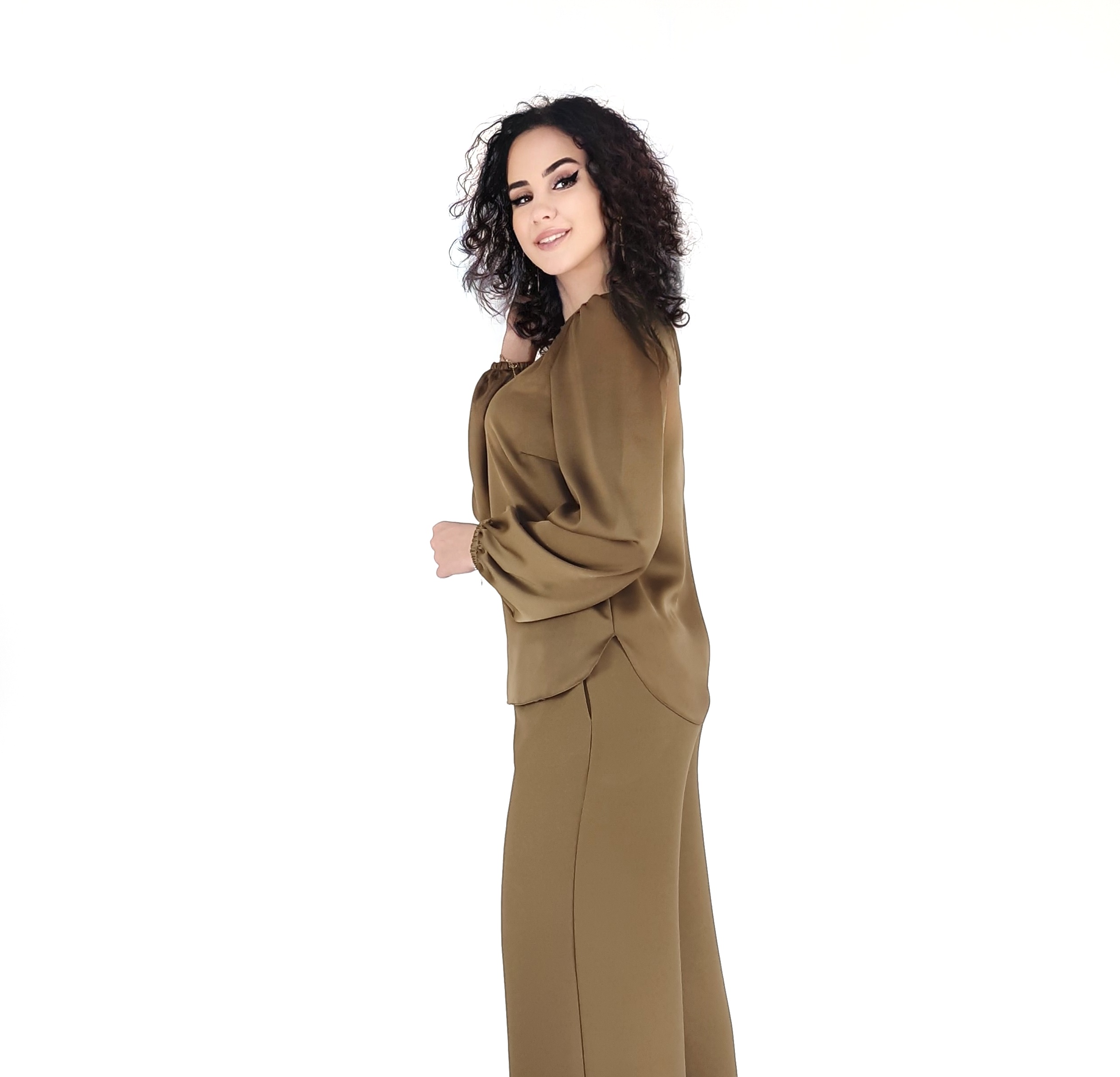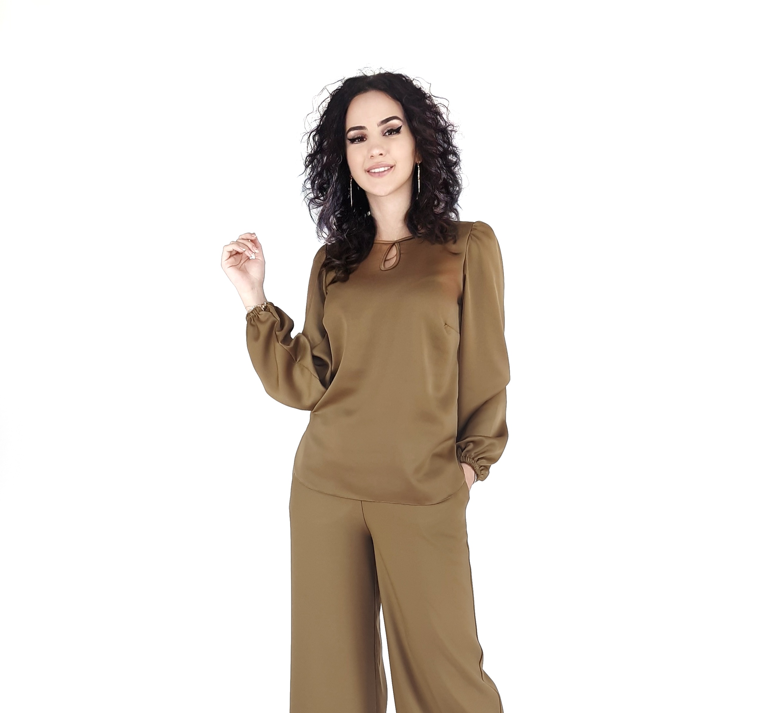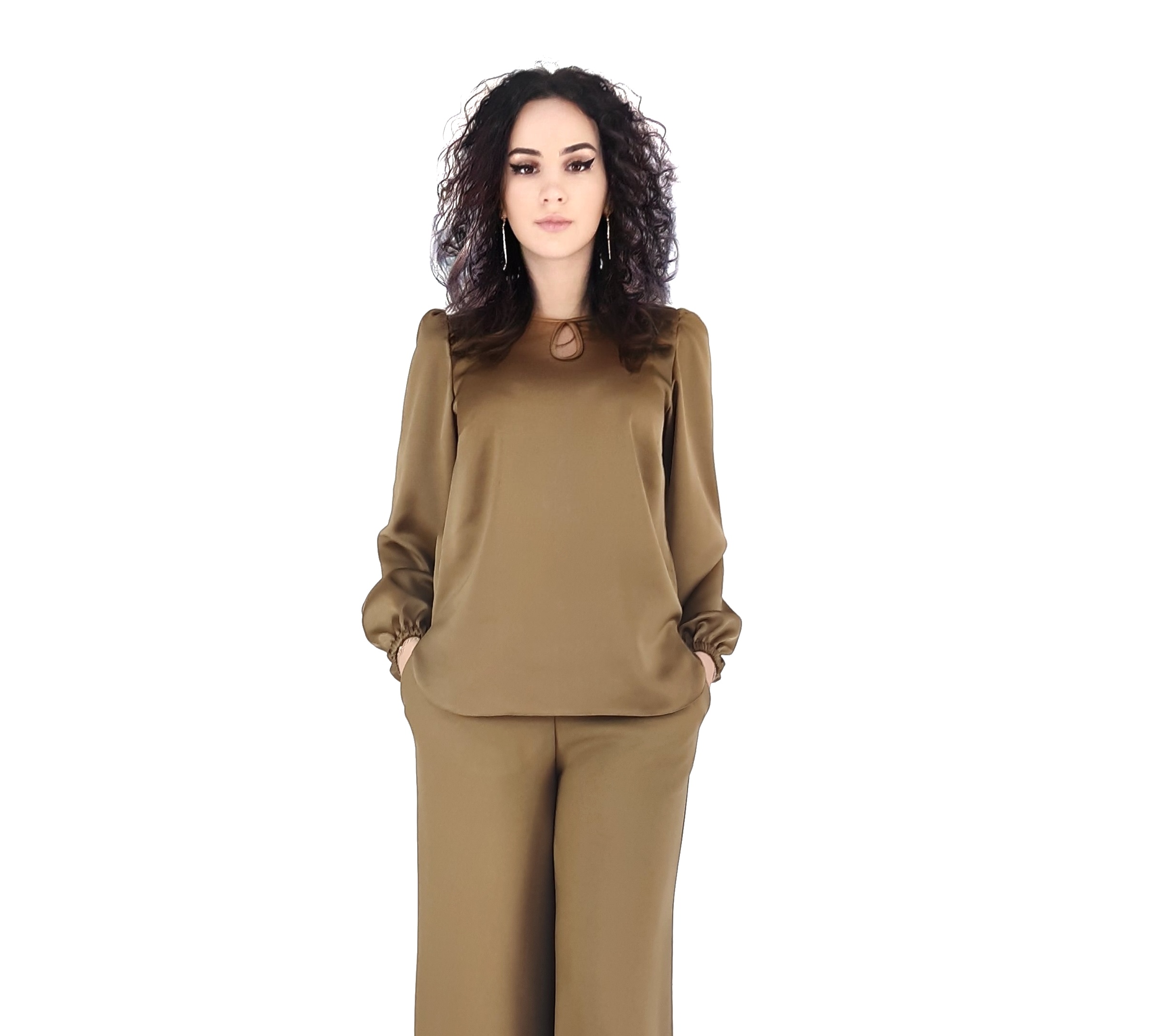 Bluza kaki cu maneca lunga.