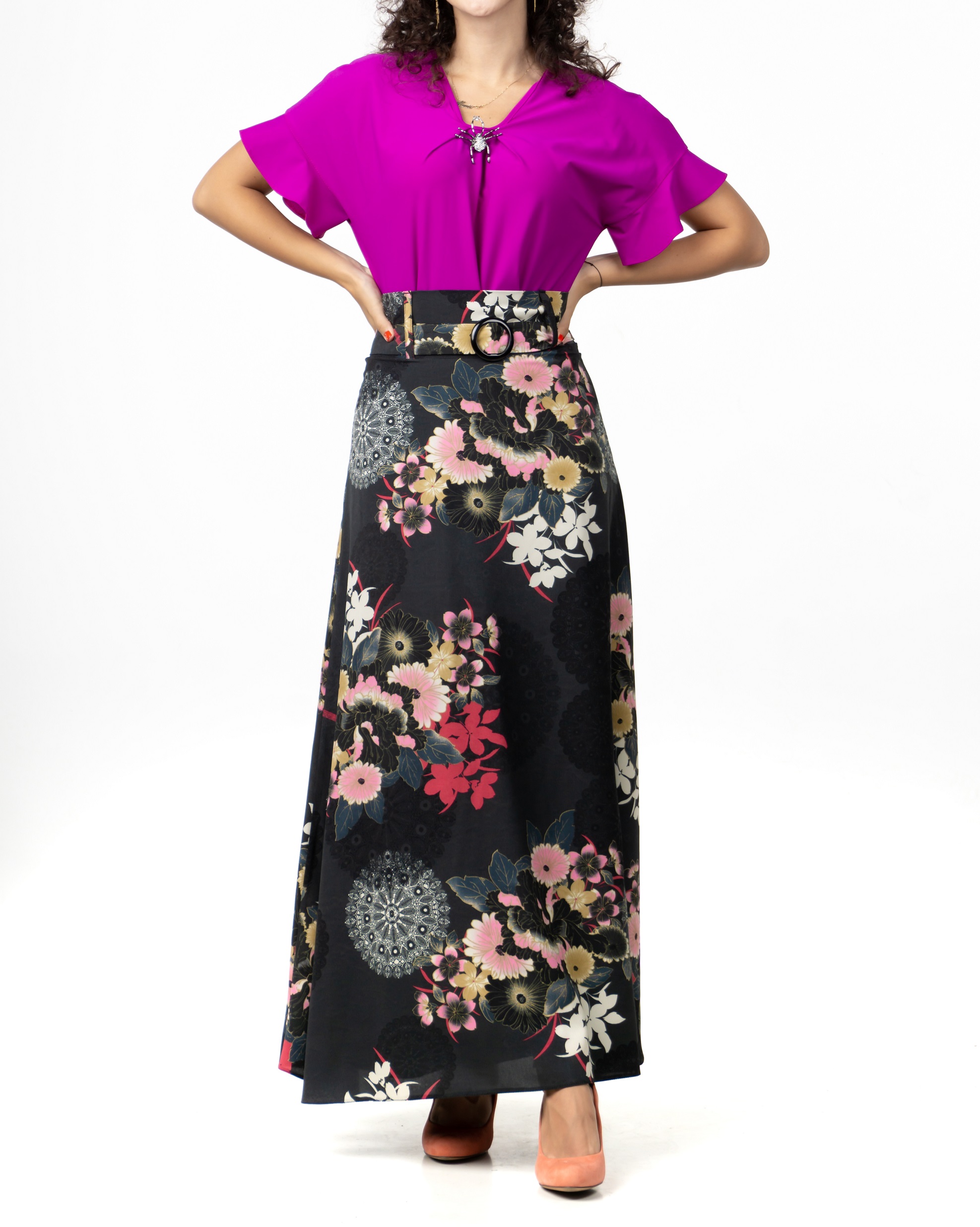 Fusta lunga imprimeu floral.
