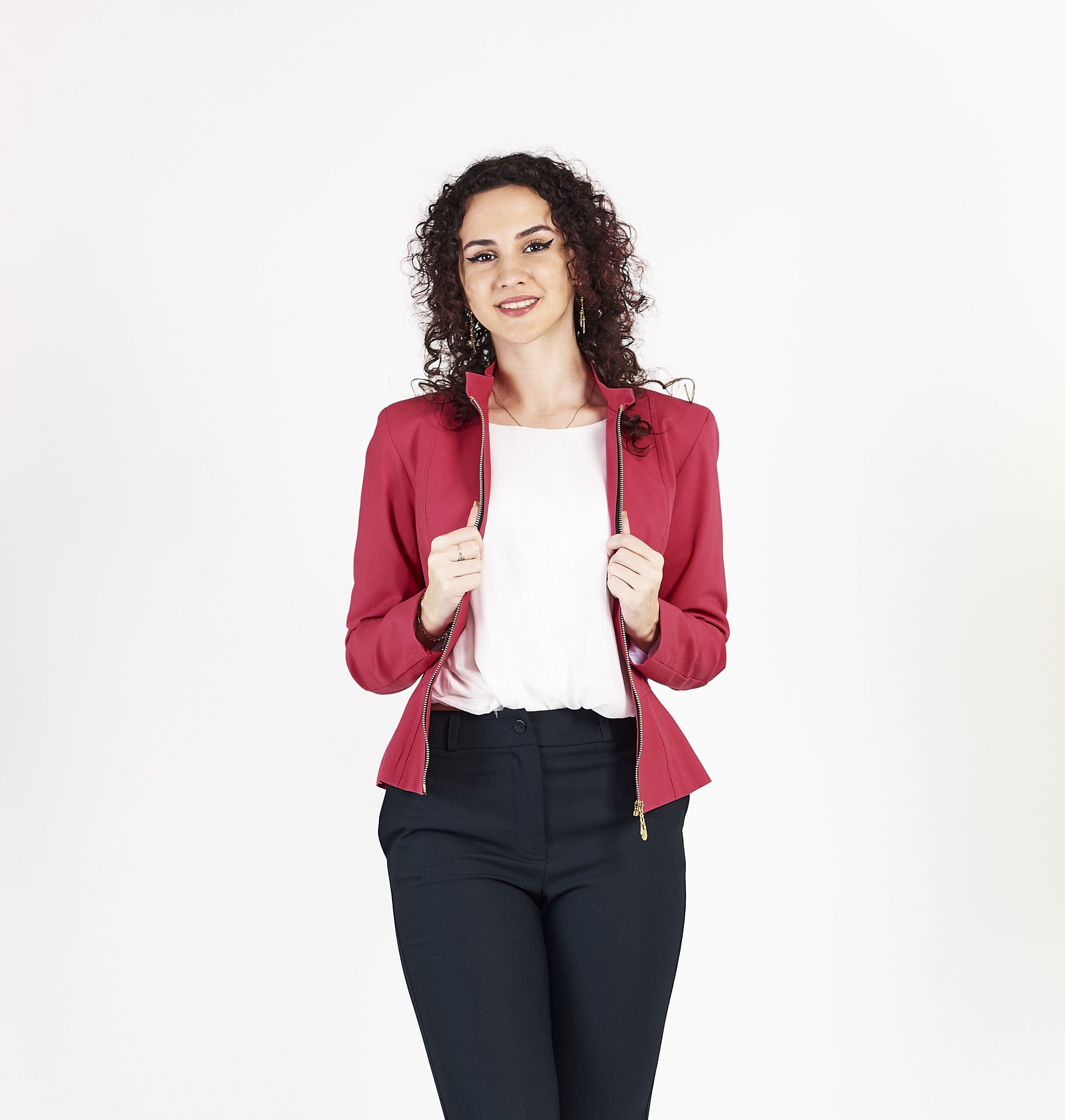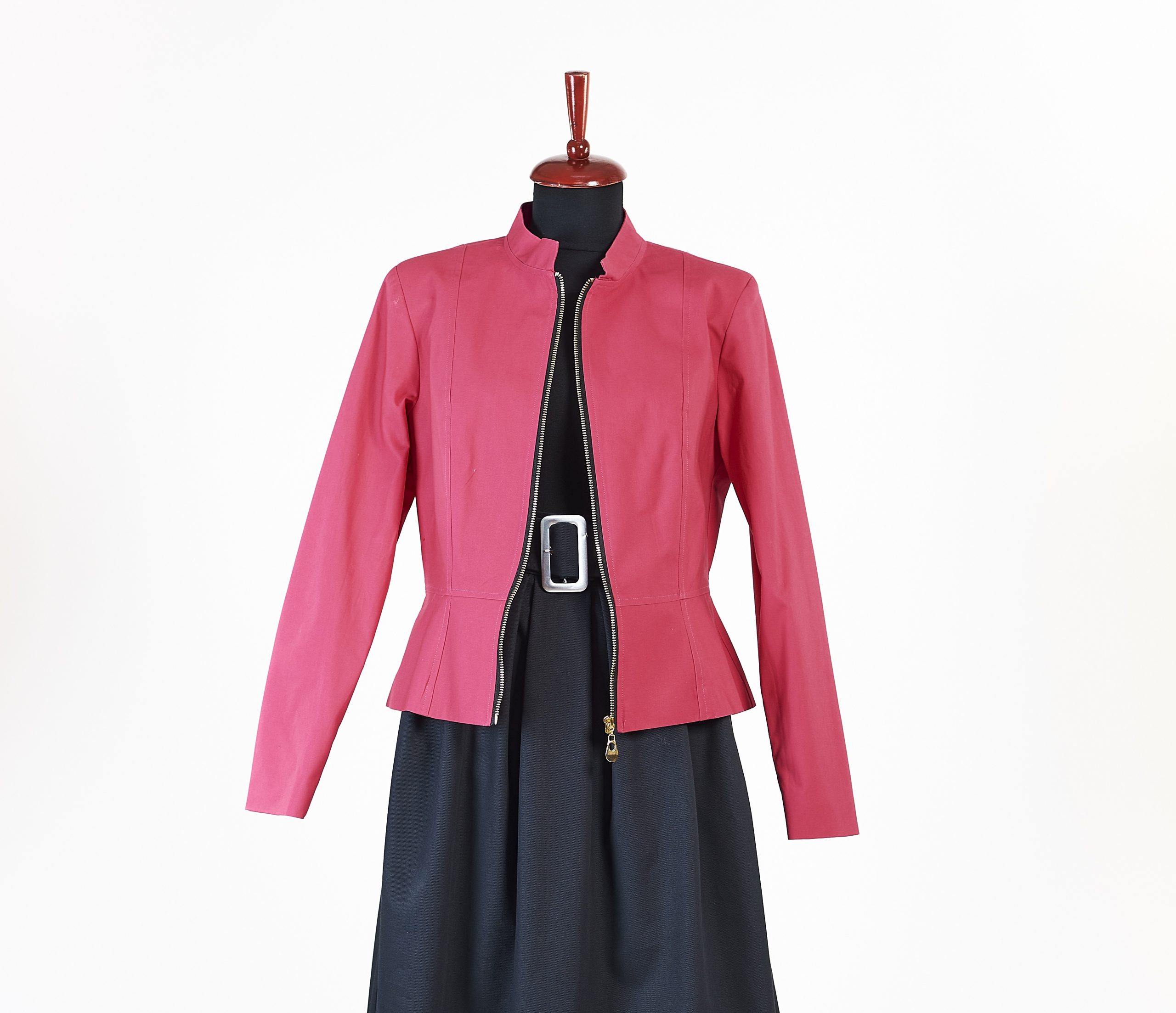 Geaca roz cu fermoar.